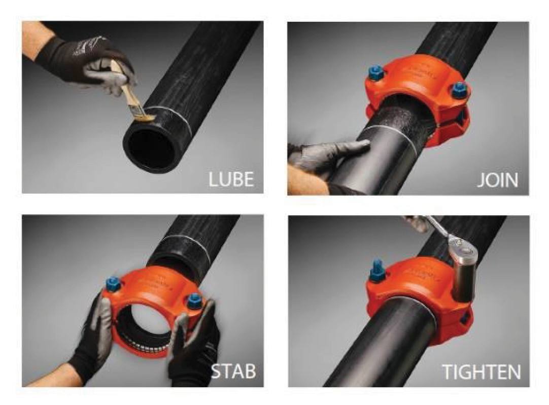 REDUCEREA MANIPULĂRII MATERIALELOR: spre deosebire de cuplajele standard, racordurile Installation-ReadyTM sunt instalate fără a fi necesară dezasamblarea cuplajului. Nu există șuruburi și piulițe desprinse pentru o manipulare mai redusă a materialelor pe șantier.